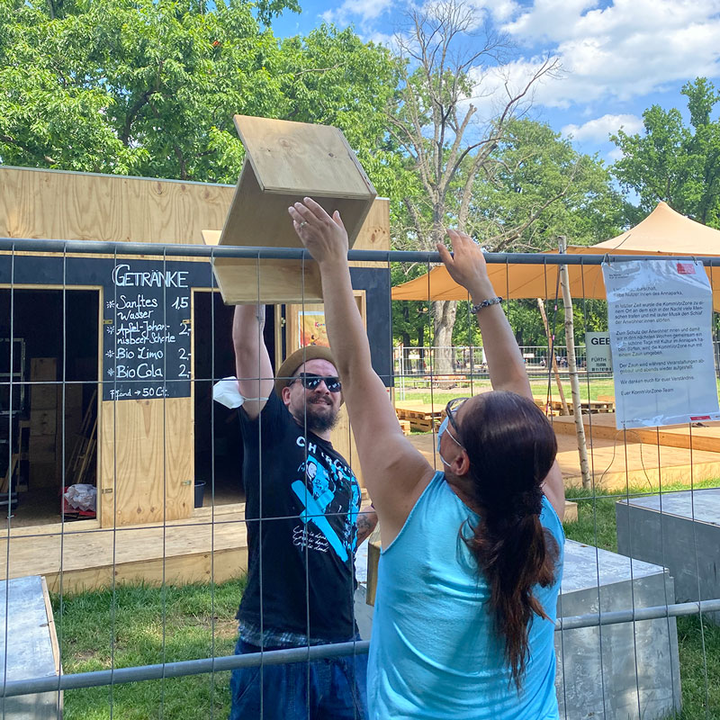 Wir haben einen tollen Begegnungsort mit einem bunten Programm im Annapark geschaffen. Zwei Wochen lang lief alles nach Plan: der Ort wurde gefeiert und gut genutzt – auch dann, wenn wir nicht da waren. Und das war herrlich! Denn es entstand ein Dritter Ort, den die Bewohner des Stadtteils sich aneignen konnten.